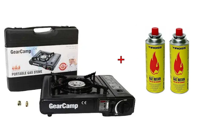 Газова плита " GearCamp " у пластиковому кейсі під цанговий балон і з перехідником під побутові балони. Класична модель одноконфоркової портативної плитки. Завдяки зручності використання й демократичній ціні, вона є найпопулярнішою моделлю. Багато людей, які стикаються з вимкненням електрики, і ті, хто просто любить подорожувати з комфортом, завжди мають у себе на дачі або в машині портативну плитку та запас газових балонів.Плита надійна, невибаглива та гранично проста в використання.Іміє п'єзопідпал, переноситься в зручному пластиковому кейсі.