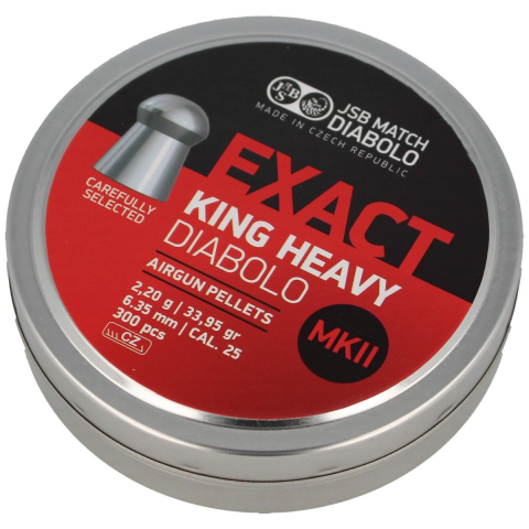 Diabolo Exact King Heavy MKII - модель в калибре .25 (6,35). За счет уменьшенного диаметра юбки данный тип пули стабильнее работает в винтовках с поворотным механизмом.