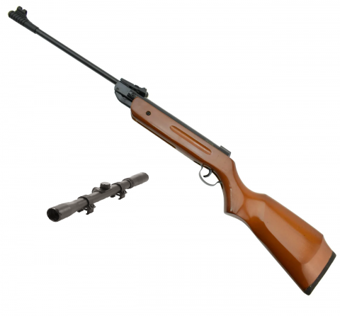 SPA B1-4 является классической пружинно-поршневой пневматической винтовкой калибра 4,5 мм. Взвод и зарядка осуществляются при помощи перелома ствола. Ложе изготовлено из натурального дерева, на цевье имеются выемки для более удобного хвата. Резиновый задник обеспечивает более комфортный упор в плечо при стрельбе и компенсирует отдачу. К плюсам так же можно отнести габариты и вес, при длине 990 мм, вес составляет всего 2,5 кг. Металлическая мушка закрытого типа и регулируемая в двух плоскостях прицельная планка обеспечивают точность стрельбы. Для стрельбы с дальних дистанций возможно установить оптический прицел на планку "ласточкин хвост" 11 мм. Нарезной ствол выполнен из высококачественной стали, начальная скорость полета пули достигает 155 м/с. В качестве боеприпаса используются свинцовые пули калибра 4,5 мм, рекомендуемый вес 0,28-0,57 г. Винтовка проста в обращении одинаково хорошо подойдет как взрослым, так и детям. Технические характеристики позволяют использовать SPA B1-4 не только для развлекательной стрельбы, но и для получения навыков обращения с оружием. Для безотказной работы рекомендуется тщательно чистить ствол после стрельбы и своевременно смазывать оружие. И еще один плюс данной модели, конечно же бюджетная цена. Так же стоит заметить, что модель обеспечена гарантией и не требует расконсервации. В комплекте идет оптический прицел 4х20.