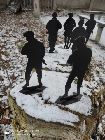 Набор мишеней “Солдаты” Количество: 5 шт Материал: сталь (1,5 мм) Габарит. размер, мм : 160х75 Производство: VB, Украина