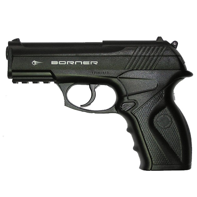 Производитель: Borner, USA Калибр: 4,5мм (.177)Материал основы/корпуса: металл/пластикИсточник энергии: баллончик CO2, 12 гр.Вместимость магазина: 15 шт. (Шарики ВВ)Дульная энергия: до 3 Дж Скорость пули: до 120 м/с Длина: 205 мм Вес: 450 гр