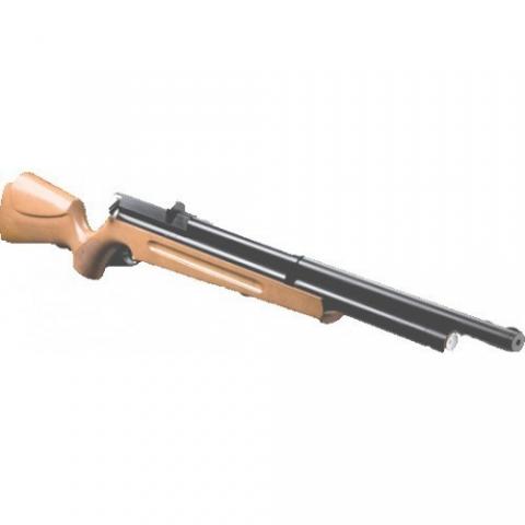 Пневматическая винтовка SPA M22 относится к классу РСР оружия, для того чтобы произвести выстрел, используется система предварительной накачки воздуха. В отличие от пружинно-поршневых моделей, у винтовок PCP ствол остается неподвижным, перезарядка с помощью «болта». Максимальное давление, которое необходимо для работы винтовки 200 атмосфер. Резервуар винтовки рассчитан на 250 см3, это обеспечивает возможность сделать около 70 выстрелов после одной накачки. SPA M2 снабжена манометром, который производитель расположил в торцевой части резервуара. Это позволяет в любое время видеть, сколько еще выстрелов возможно сделать. Калибр ствола самый распространенный среди пневматики 4.5 мм Классически изящна, элегантна, с небольшим 3,7 кг весом позволяет стрелять не уставая довольно долго и удобно лежит в руках стрелка. Общая длина винтовки SPA M22 1140 мм. Модели добавляет «солидности» приклад из благородного дерева, цевье имеет выемки, а рукоятка декоративную резьбу для удобства хвата. Приклад подойдет для стрельбы как правшам, так и левшам. Затыльник из мягкой плотной резины, отдачи стрелок практически не почувствует. SPA M22 имеет четко сбалансированный стальной нарезной ствол. В дальнейшем для дополнительного ухода за винтовкой рекомендуется применять специальные средства (масла и шомпола) для ухода за оружием. Магазин модели рассчитан на 13 зарядов. Наиболее подходящим боеприпасом для SPA M22 PCP будут тяжелые свинцовые пули весом 0,57-0,69 гр. Заявленная производителем скорость полета пули 305 м/с, соответственно винтовка относится к 'магнум' классу. Модель оснащена двухступенчатым регулируемым спуском и ручным предохранителем. В комплект входит оптически прицел 4-16х50АОЕ для стрельбы на дальние дистанции. Прицельных приспособлений модель не имеет. Бесспорно, став владельцем такой модели, сторонники технологии PCP никогда не пожалеют о потраченных деньгах. В комплект поставки так же входит насос.