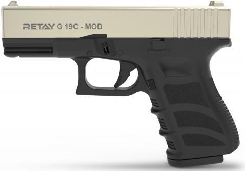 Стартовый пистолет Retay G19C Satin является аналогом боевого пистолета Glock 19. Предназначен для стрельбы холостыми патронами калибра 9 мм, применение других снарядов исключено, так как канал ствола заглушен. Запрещено вносить какие либо изменения в конструкцию, нарушение этого правила влечет за собой уголовную ответственность.Retay G19C Satin не квалифицируется как боевой, соответственно, не требует разрешение на хранение или покупку, что также является огромным плюсом такого средства самозащиты. Пистолет Retay G19C Satin очень удобно держать, за счет рукоятки эргономичной формы. Корпус выполнен из полимера за счет этого пистолет весит всего 767 грамм, к тому же не подвержен коррозии. Габариты модели: длина 175 мм, высота 129 мм. Магазин выполнен из стали, рассчитан на 7 зарядов. При выстреле затворная рама пистолета подвижна, пистолет встает на затворную задержку после использования всех патронов. Использование сигнального пистолета является мощным психологическим фактором. Неожиданный громкий выстрел, который напоминает реальный выстрел из огнестрельного оружия, способен деморализовать даже группу нападающих. Кроме того Retay G19C Satin может напугать не только человека, но и стаю разъяренных бродячих собак. Так же может послужить новичку для приобретения навыков обращения с оружием. Retay G19C Satin может стать отличным подарком ценителю оружия. Стоит соблюдать правила эксплуатации пистолета: применять при температуре не ниже 15 и не выше 50 градусов, своевременно чистить и смазывать. К тому же комплект поставки входит ершик и нейтральное масло.Модель продается в специальном кейсе из качественного пластика, который надежно защищает продукцию от случайных повреждений при транспортировке. Преимуществом данной модели является бюджетная цена в сравнении с аналогичными моделями других производителей. Турецкий производитель Retay Arms специализируется на производстве огнестрельного, пневматического и сигнального оружия. В Украине с фирма появилась совсем недавно, но уже успела завоевать поклонников.