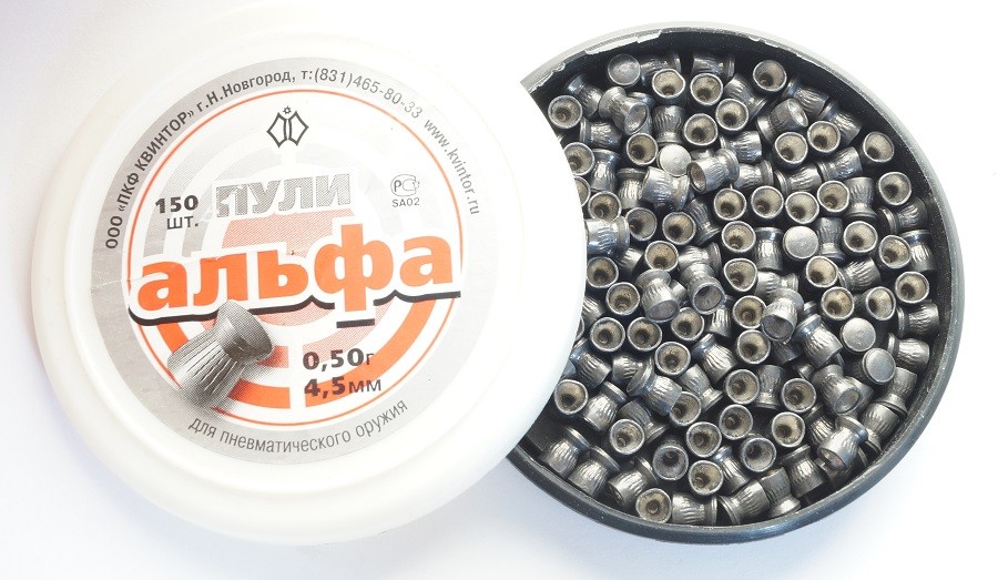 Вес пули, г.: 0,5 Калибр: 4,5мм Количество в упаковке, шт: 150