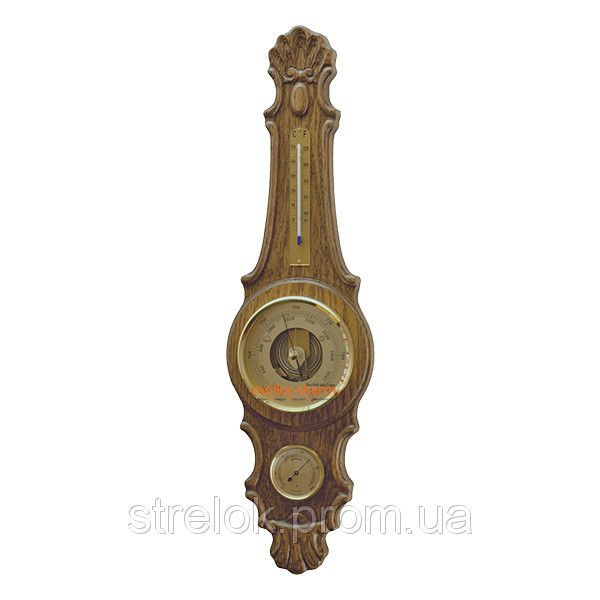 Перед началом работы прибор подлежит калибровке, согласно инструкции!Барометр (hPa/мм.рт.ст)Термометр(?C), гигрометр(%)Материал корпуса - деревоЦвет - дуб в стиле кантриГарантия - 2 годаРазмеры - 637 x 172 mm / ? 130 mmВес - 1420 гр