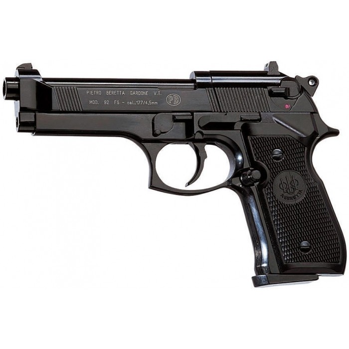 Спуск: Двойного действия, возможна стрельба самовзводом и с предварительно взведенным курком Материал рукояти: Пластик Материал корпуса: Силумин Копия легендарного пистолета Beretta M 92 FS.