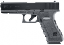 У этого пистолета, как и у боевого образца, на тыльной стороне рукояти есть автоматический предохранитель, снять оружия с которого можно просто взяв его в руки (т.е., пистолет не выстрелит до тех пор, пока вы его не возьмете правильным хватом). И, опять-же, как и у боевого образца, у этого пистолета есть и неавтоматический предохранитель флажкового типа (его видно на фотографии, чуть ниже и левее курка).