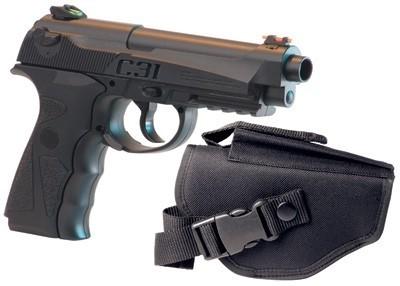 Прицельные приспособления: прицельная планка и мушка с фибероптическими нитями Предохранитель: неавтоматический Материал корпуса: пластик Комплект: пистолет с одним магазином, синтетическая кобура, инструкция, блистерная упаковка