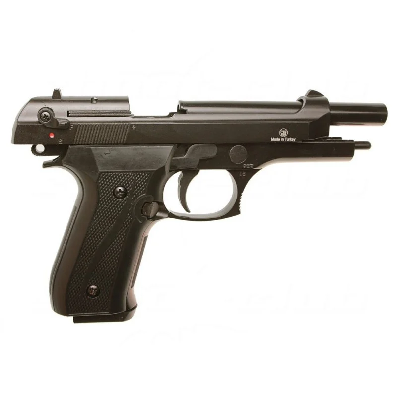 Пістолет має зовнішню схожість з італійським Beretta 92FS. Як боєприпас використовується пістолетний холостий патрон калібру 9 мм. Місткість магазину 17 патронів + 1 (у патроннику). Пістолет має вагу 1125 кг при габаритних розмірах: довжина 210 мм, ширина 40 мм, висота 138 мм. Корпус виконаний із сплаву.