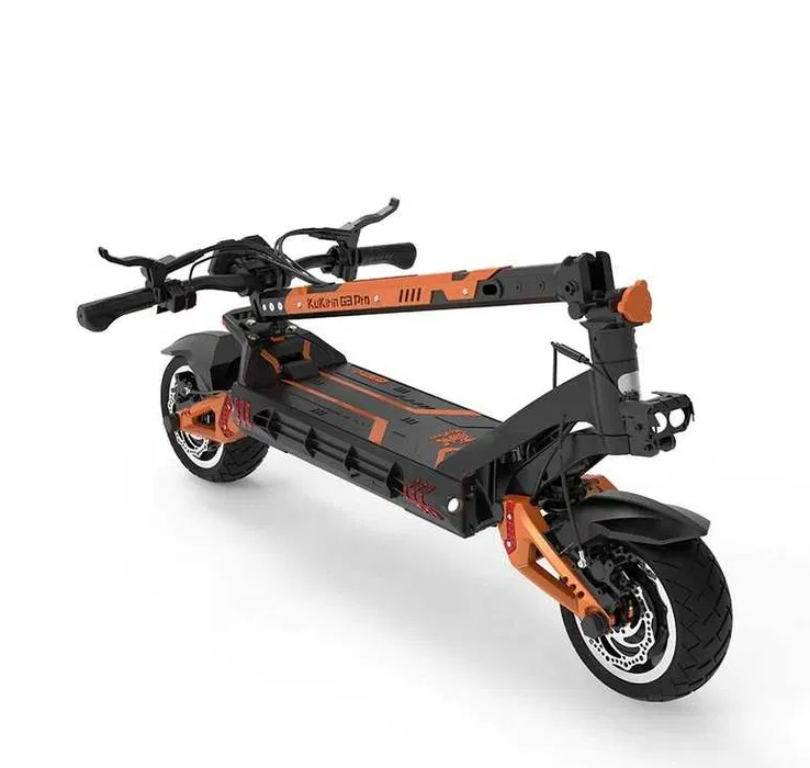 KuKirin G3 Pro, оснащенный двумя двигателями по 1200 Вт, развивает максимальную мощность 1500 Вт и максимальную скорость 65 км/ч, что позволяет вам наслаждаться эффективной и захватывающей поездкой по бездорожью.