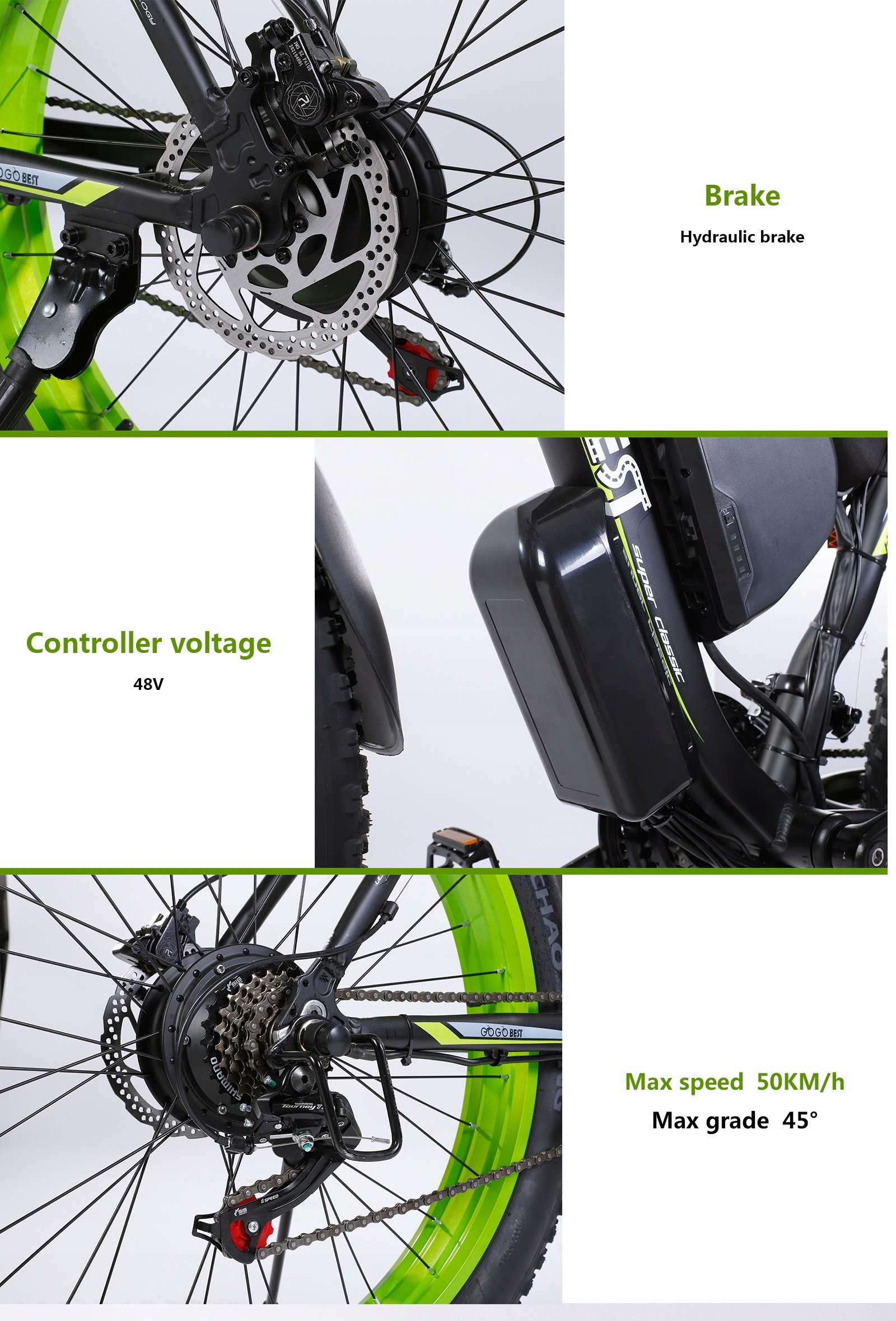 Передній/задній 1000 Вт подвійний контролер двигуна 48 В/17.5 Ач Місткість акумулятора 26*4.0 Товстяні шини 25 км/год (обмежена швидкість) Максимальний нахил 45°