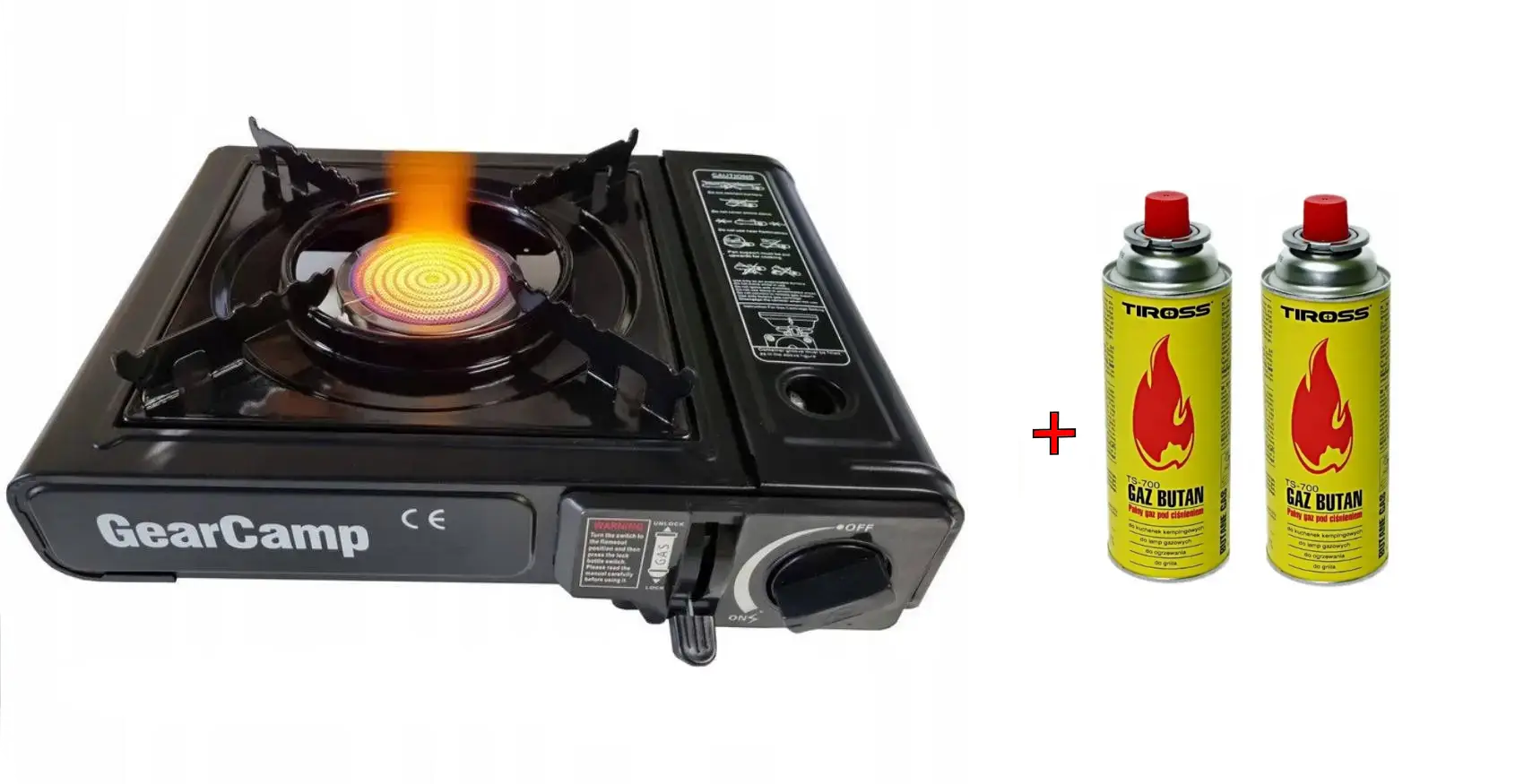 Газова плита GearCamp портативна, з двома штуцерами під маленький і великий балон і 2 балончиками