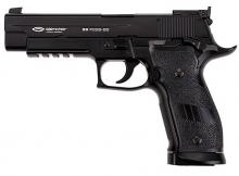Калибр: 4,5 мм.Источник энергии: баллончик СО2, 12 гр.Емкость магазина: 7 шариков BB.Cкорость пули: 120 м/с.Вес: 700 г.Длина: 21 см.Материал корпуса: металл.Материал рукоятки: пластик «под дерево».