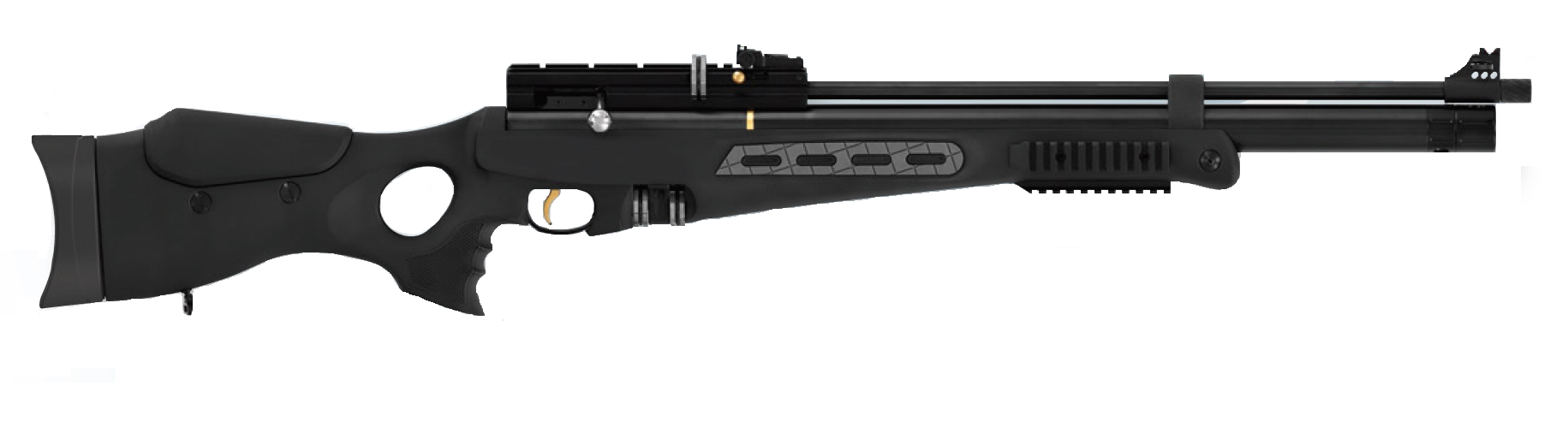 ип: PCP (пневматика с предварительной накачкой).Калибр: 4,5 мм.Зарядность: барабан на 10 пуль типа Диаболо.Cкорость пули: до 380 м/с.Вес: 4.3 кг.Длина: 108 см.Ствол: Стальной, нарезной.Материал приклада: Пластик.