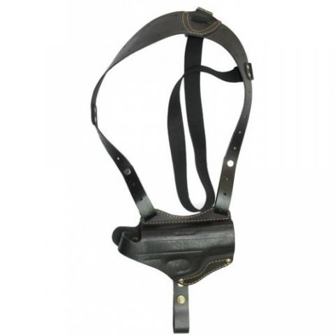 Оперативная кобура из натуральной кожи, под пневматический пистолет Crosman C11. Подвеска регулируется винтами, на правом плече кобура фиксируется резинкой с регулятором длины. Универсальность кобуры заключается в том, что она может использоваться, как поясная