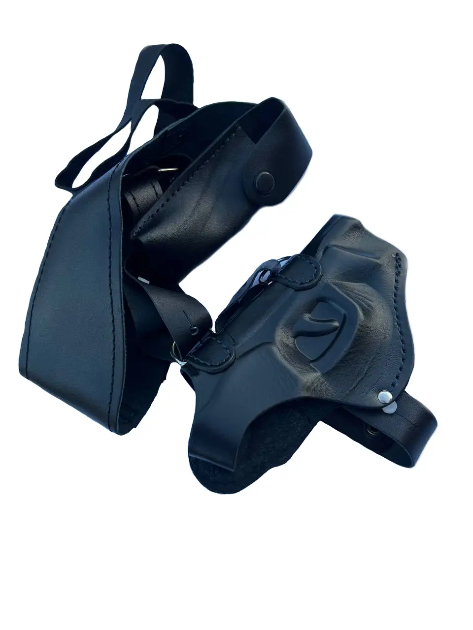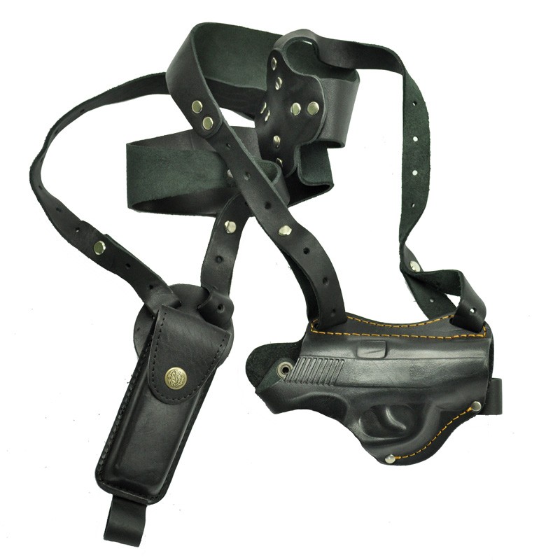 Оперативная кобура из натуральной кожи, под пневматический пистолет Макарова (ПМ) и под магазин. Подвеска регулируется винтами. Универсальность кобуры заключается в том, что она может использоваться, как поясная.