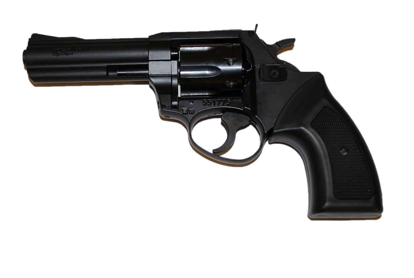 Револьвер под патрон Флобера Kora Brno 2,5. Удобный револьвер от известных во всем мире чешских оружейников. По внешнему виду напоминает револьвер-бестселер Kolt Piton. Начальная скорость пульки около 220 м/с. На данный момент один из самых мощных револьверов под патрон Флобера. Нарезной ствол. Восьмизарядный барабан. Ствол и барабан изготовлены из стали. Рама револьвера выполнена из металлического сплава. Корпус револьвера вороненый, черная пластиковая рукоять. Регулируемая прицельная планка.