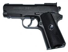 Начальная скорость пули 100 м/с.Калибр 4.5 ммТип: газобалонная пневматика СО2Тип боеприпасов Шарики ВВОбщая длина 230 ммРазмер магазина 18 пульТип прицела Прицельная планка и мушкаПодвижный затвор (blow-back-action)Корпус — металлВес 1,3 кг