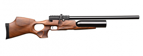 Винтовка снабжена подствольным резервуаром, колбой высокого давления, увеличенного объема 425 см3. Максимальное давление – до 250 бар. Для контроля уровень давления она оборудована встроенным манометром. Одной заправки хватает минимум на 50, максимум – на 98 выстрелов.