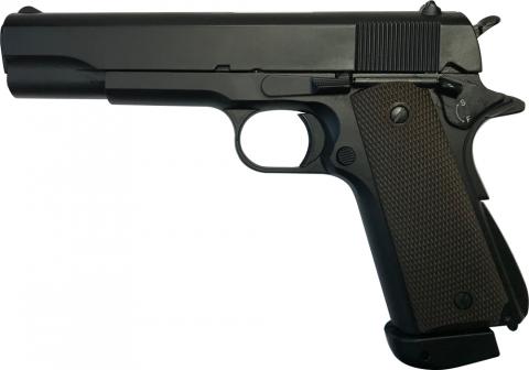 Пневматический пистолет ZBROIA M1911 это своего рода аналог широко популярного и уже зарекомендовавшего себя в кругах оружейной охоты Colt M1911. Именно с пистолетов подобного типа и начинается знакомство с миром оружия. Стоит заметить, что данные модели не стоит эксплуатировать в целях средств для самообороны, но зато они отлично подойдут для развлекательной стрельбы и тренировок на дистанции 5 и 10 метров. Популярность пневматического пистолета ZBROIA M1911 обуславливается недорогой ценой, а также, что немаловажно, не требуют получения разрешения на покупку. К тому же, если взять в сравнение те же револьверы Флобера, ZBROIA M1911 значительно дешевле в использовании. Корпус данного пистолета изготовлен из металлического сплава, а рукоять произведена из пластика. Сам ствол ZBROIA M1911 гладкий и сконструирован из стали. Еще особенностью пневматического пистолета ZBROIA M1911 является наличие двух предохранителей. Первый - стандартный с двумя позициями, а в качестве второго выступает специальная лапка, которая во время выстрела обязательно должна быть прижата. Это очень удобно в том случае, что держа пистолет ниже по рукояти, то есть в неправильном положении, совершить неконтролируемый выстрел будет невозможно. Так же ZBROIA M1911 оборудован системой BlowBack, которая в полной мере создает имитацию передергивания затвора при стрельбе в точности как на боевом оружии. ZBROIA M1911 производит выстрелы металлическими шарами, именуемые ВВ, калибр которых составляет 4.5 мм. Магазин описываемого ZBROIA M1911 рассчитан на 17 штук. Что касаемо длины самого пистолета, то она составляет 205мм. Вес данной модели - 940 грамм, что позволяет удобно и четко фиксировать пистолет в руке даже начинающим стрелкам, в том числе и женскому полу. Удобный дизайн и легкий вес этого пистолета делает его простым в использовании. Имея все вышеописанные характеристики пневматический пистолет ZBROIA M1911 станет отличной покупкой и прослужит вам долгую службу на поле развлекательной и учебной стрельбы.