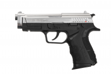 Хоть сигнальный пистолет Leo GT70 от компании Carrera Arms, и не имеет боевого прототипа, но внешне весьма схож с известным бразильским полуавтоматический пистолет Taurus PT 24/7 который в 2005г. стал пистолетом года, по версии Национальной Стрелковой Ассоциации США.Пистолет предназначен для стрельбы холостыми 9мм. патронами, имеет текстурированную анатомическую рукоять, обеспечивающую удобство и надёжность хвата, а ручной предохранитель флажкового типа предотвращает случайный выстрел. Питание боеприпасами обеспечивает двухрядный магазин на 14 патронов + 1 в стволе. В передней части рамы расположена планка Пикатинни/Вивера, позволяющая крепить дополнительные аксессуары, такие как фонарь или лазерный целеуказатель. Рама пистолета выполнена из полимера, а затвор и ствол из стали, при этом обеспечивается довольно реалистичный вес оригинала. Использовать данный сигнальный пистолет, ввиду его идентичность настоящему боевому пистолету, можно не только как стартовый при проведении спортивных мероприятий, но и для холощения, тренировок обращения с оружием и тренировках по самообороне. Громкий выстрел холостого патрона позволит отпугивать разного рода опасных животных, подавать сигналы в экстренных ситуациях, а также использовать в качестве реквизита при видео-сьёмках и театральных постановках. Пистолет поставляется в удобном для транспортировки и хранения пластиковом кейсе, в комплект входит шомпол, маслёнка и инструкция. Представлен в четырёх цветовых решениях: Чёрном, Сатиновом, Хромированном и Дымчатом.