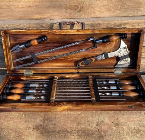 Комплект шампуров в деревянном кейсе "Одинокий Волк"