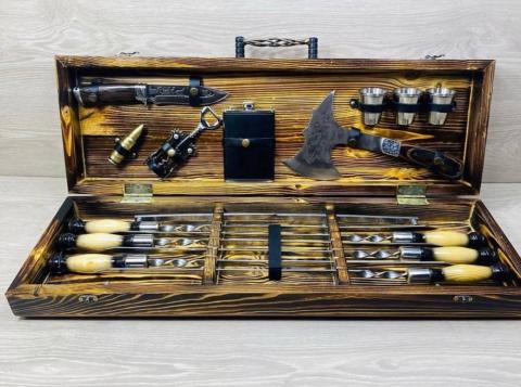 Комплект шампуров в деревянном кейсе "Одинокий Волк"