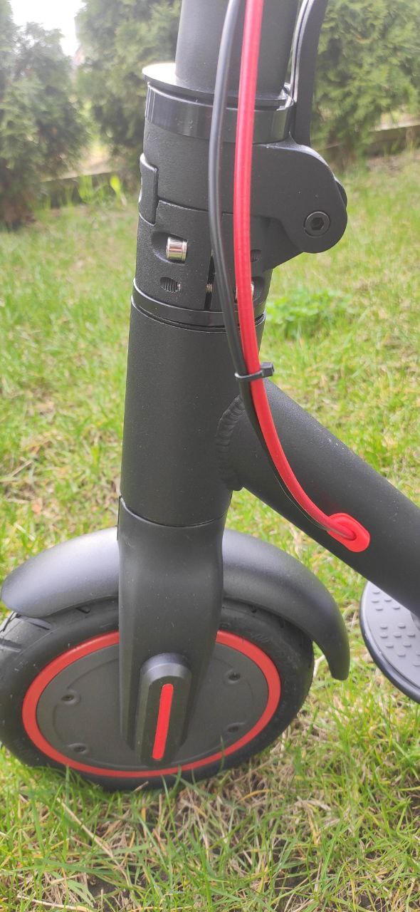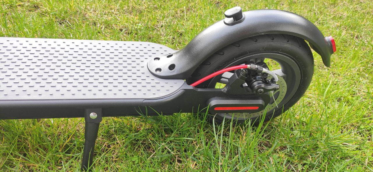 Тормозной диск обладает вентилируемой системой, электросамокат четко реагирует на торможение, оставляя тормозной путь до 4 метров. Антиблокировочная тормозная функция эффективна в работе, поэтому безопасность на высоком уровне.