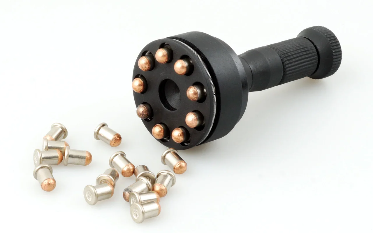 Спидлоадер + обжимка (механизм быстрой зарядки) – используется для сокращения времени и усилия, необходимое для перезарядки револьверов под патрон Флобера 4 мм. Совместим практически со всеми револьверами которые имеют 9 зарядный барабан (4 мм). Корпус выполнен полностью из стали, а в основе конструкции спидлоадера используется стальная пружинка, что делает конструкцию долговечной. В рукоятке спидлоадера интегрирована обжимка патронов – устройство, которое поможет увеличить скорость до 30% , причем не нарушая закона, улучшить кучность и решить проблему с выпадением шарика из гильзы.