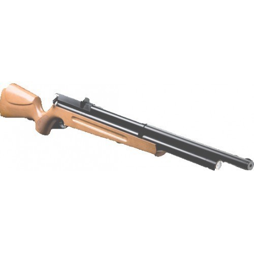 Пневматическая винтовка SPA M22 относится к классу РСР оружия, для того чтобы произвести выстрел, используется система предварительной накачки воздуха. В отличие от пружинно-поршневых моделей, у винтовок PCP ствол остается неподвижным, перезарядка с помощью «болта». Максимальное давление, которое необходимо для работы винтовки 200 атмосфер. Резервуар винтовки рассчитан на 250 см3, это обеспечивает возможность сделать около 70 выстрелов после одной накачки. SPA M2 снабжена манометром, который производитель расположил в торцевой части резервуара. Это позволяет в любое время видеть, сколько еще выстрелов возможно сделать. Калибр ствола самый распространенный среди пневматики 4.5 мм Классически изящна, элегантна, с небольшим 3,7 кг весом позволяет стрелять не уставая довольно долго и удобно лежит в руках стрелка. Общая длина винтовки SPA M22 1140 мм. Модели добавляет «солидности» приклад из благородного дерева, цевье имеет выемки, а рукоятка декоративную резьбу для удобства хвата. Приклад подойдет для стрельбы как правшам, так и левшам. Затыльник из мягкой плотной резины, отдачи стрелок практически не почувствует. SPA M22 имеет четко сбалансированный стальной нарезной ствол. В дальнейшем для дополнительного ухода за винтовкой рекомендуется применять специальные средства (масла и шомпола) для ухода за оружием. Магазин модели рассчитан на 13 зарядов. Наиболее подходящим боеприпасом для SPA M22 PCP будут тяжелые свинцовые пули весом 0,57-0,69 гр. Заявленная производителем скорость полета пули 305 м/с, соответственно винтовка относится к 'магнум' классу. Модель оснащена двухступенчатым регулируемым спуском и ручным предохранителем. В комплект входит оптически прицел 4-16х50АОЕ для стрельбы на дальние дистанции. Прицельных приспособлений модель не имеет. Бесспорно, став владельцем такой модели, сторонники технологии PCP никогда не пожалеют о потраченных деньгах. В комплект поставки так же входит насос.