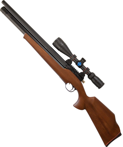 Если взглянуть на первый вариант винтовки PCP Хортица, то можно заметить, что экстерьер винтовки в целом почти не изменился. Классическая ложа типа Монте-Карло из дерева и пневматическая система, которая обычно отличается разве что объемом резервуара и длиной ствола. Но изменения есть.