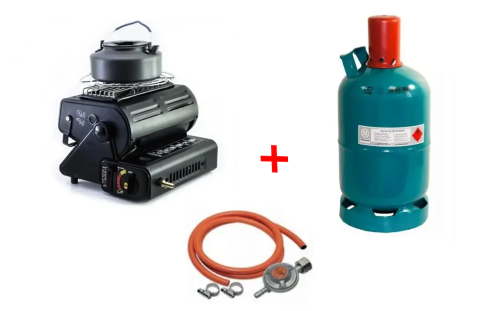 Портативний газовий нагрівач — працює через нагрівання керамічної пластини, живлення від цангового балона об'ємом 220.