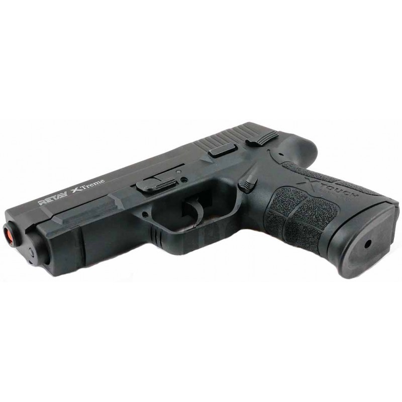 Стартовый пистолет Retay XTreme — шумное и практичное оружие Купить полуавтоматический стартовый пистолет Retay XTreme черного цвета можно для самообороны или для развлечений. С его помощью получится проводить эффективные тренировки в тире, дрессировать животных или вовремя подавать сигнал бедствия. Чаще всего приобретают данную модель охотники, туристы, рыболовы и любители стрельбы. Большим плюсом стартового пистолета Retay XTreme окажется отсутствие необходимости оформлять разрешение на ношение устройства.