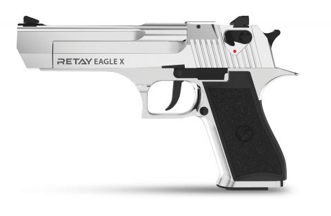 Стартовый пистолет Retay Eagle nickel, прототипом которого является знаменитый Desert Eagle, что в переводе-Пустынный орел, не оставит равнодушным ни одного ценителя оружия. Оригинал, прославленный кинематографом и компьютерными играми, едва ли не самым узнаваемый пистолет в мире. Внушительные габариты сигнальной копии: вес 1426 грамм, а общая длина 220 мм, позволяют прочувствовать грозную мощь оружия. Основная функция Retay Eagle nickel имитация боевого оружия, как визуально, так и в момент применения, с чем он успешно справляется. Громкий выстрел в воздух, сопровождаемый вспышкой поможет спугнуть недоброжелателей или диких животных. К тому же, владелец может применять данный вид оружия без опасений, так как нанести существенный вред можно лишь при выстреле в упор. Корпус Retay Eagle nickel изготовлен из металла. Пистолет имеет вместительный стальной магазин, рассчитанный на 18 патронов. Ударно-спусковой механизм пистолета не имеет самовзвода, что применительно к сигнальному оружию нельзя считать недостатком. Затворная задержка полностью функциональна. Благодаря эргономичной рукоятке пистолет комфортно лежит в руке. Предусмотрен предохранитель флажкового типа. В стволе установлена стальная несъемная заглушка для предотвращения применение иных патронов. Внесение каких либо изменений в конструкцию пистолета противозаконно. Разборка пистолета не вызовет затруднений, соответственно модель может послужить в качеств тренажера для новичков. Уход: чистку и смазку Retay Eagle nickel следует производить регулярно для долгой и безотказной работы. Стандартный комплект предусматривает наличие кейса для транспортировки модели, а также нейтральное масло и ершик для чистки. Следует отметить, что данная модель достаточно реалистична и выделяется среди большинства сигнальных пистолетов, за счет этого может послужить реквизитом для съемок или постановок. К тому же Retay Eagle nickel может стать отличным подарком для коллекционера оружия.