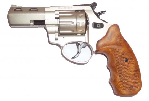 Калибр: 4 мм Масса револьвера (без патронов): 800 г Ширина: 37 мм Высота: 140 мм Длина ствола: 100 мм Материал рукояти: пластик под дерево Цвет: сатин Ствол: стальной Длина общая: 200 мм Вместимость барабана: 9 патронов Скорость полета пули на расстоянии 3,5 м от дульного среза ствола: 180±20 м/с. Регулируемые прицельные приспособления ( прицельная планка, мушка) Ударно-спусковой механизм: сплав