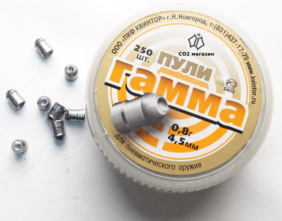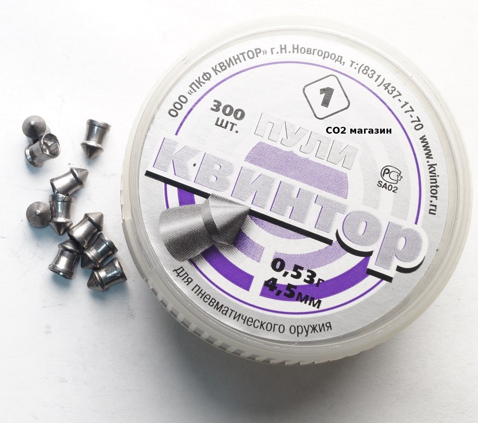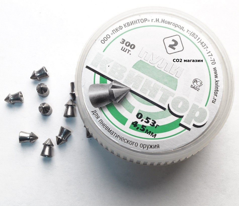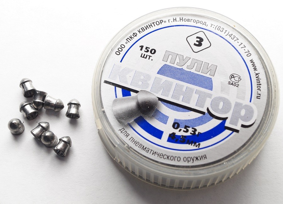 Калибр 4,5 мм. Вес 0,2 гр. Длина 6,5 мм. Упаковка пластиковая банка (50 штук).